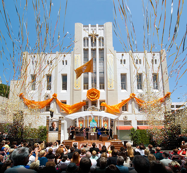 In emphasis of what this day signified for the community as a whole, Mr. David Miscavige, Chairman of the Board Religious Technology Center and Scientology’s ecclesiastical leader, dedicated the new Church. Mr. Miscavige addressed the gathering with these words: “We come to the first momentous page of this Church’s new history. Needless to say, it’s not a tide of history on which one merrily floats. On the contrary, it must be a history unlike any ever told before, a history of supreme competence, great passion and perfect adherence to our Technology. For only in that way will we ever achieve the Aims of Scientology and thus a world without war, without insanity, without criminality; a world of which we can be proud, where the able can prosper, where honest beings have rights and all are free to rise to greater heights. That is our responsibility as Scientologists—and, yes, it’s one that we proudly embrace.”
