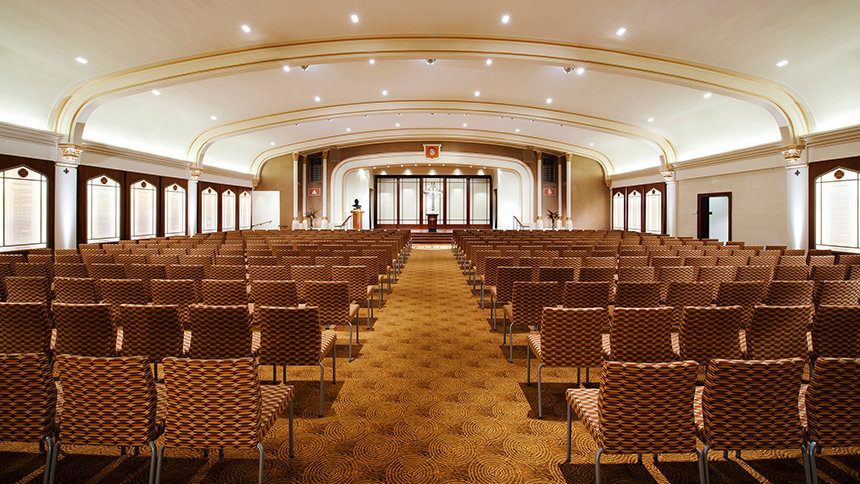 The Church’s new home, located at 505 North Sycamore Street, most recently served as the Santa Ana Performing Arts and Event Center. The 48,000 square foot building was originally constructed in 1931 as the Santa Ana Masonic Lodge. It remains one of Orange County’s finest examples of Art Deco architecture and is listed on the city, state and national registers of historic places. The Church of Scientology faithfully restored and preserved the structure, including its iconic facade anchored by a six-story central tower. The Church further returned the building’s ornate interiors to their former glory, from the alabaster chandeliers and hand-painted ceilings to the carved mahogany staircases. The landmark third-floor ballroom once again stands as a gathering place for the community, serving as the grand Chapel and auditorium venue for parishioners and people of all faiths in Orange County.